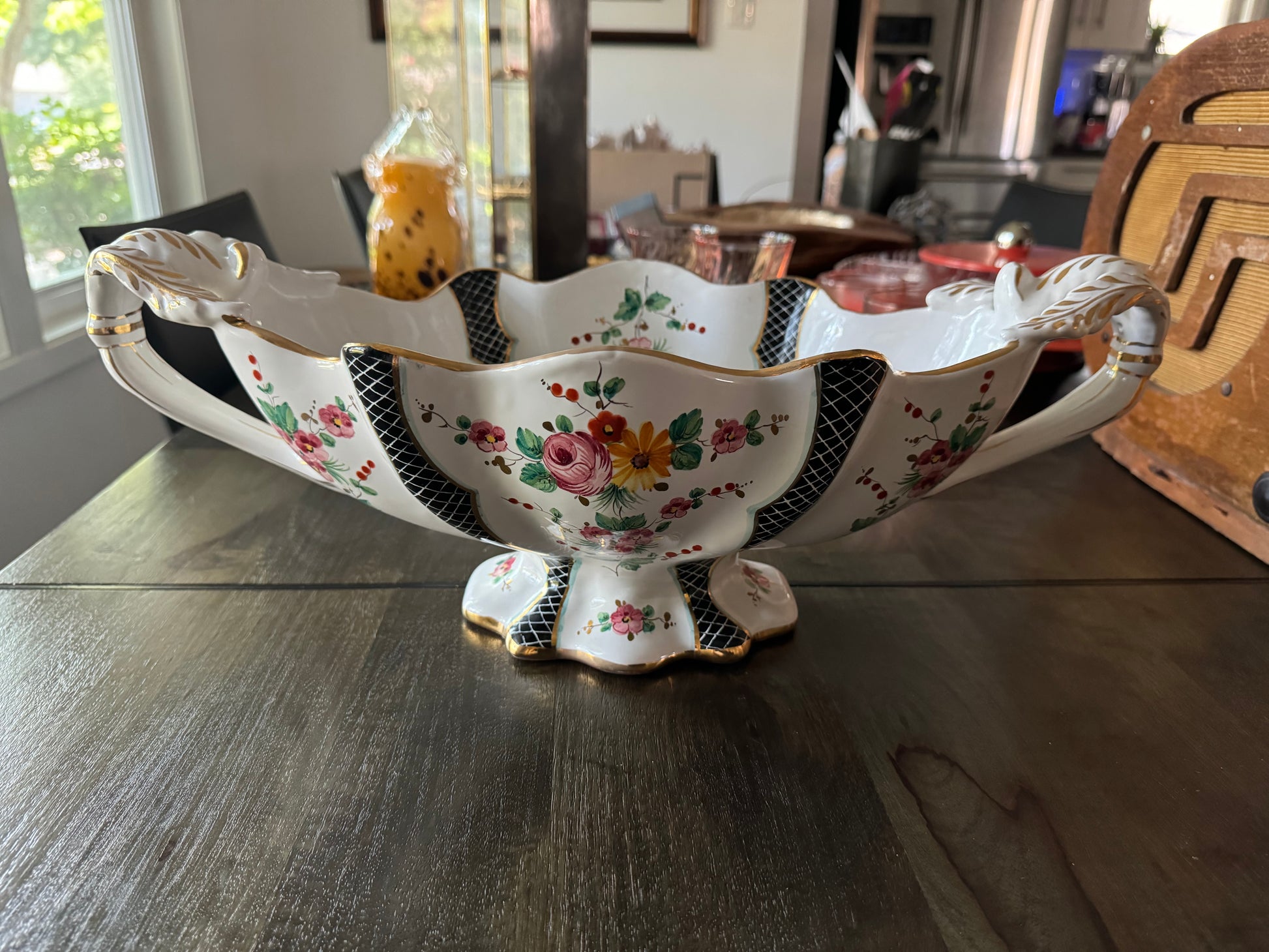This Vintage Deruta Signed Hand-Painted Italian Centerpiece Bowl is a magnificent example of traditional Italian craftsmanship. Measuring an impressive 19 inches in length, this bowl features intricate hand-painted designs that reflect the rich artistic heritage of Deruta, renowned for its exquisite ceramics.