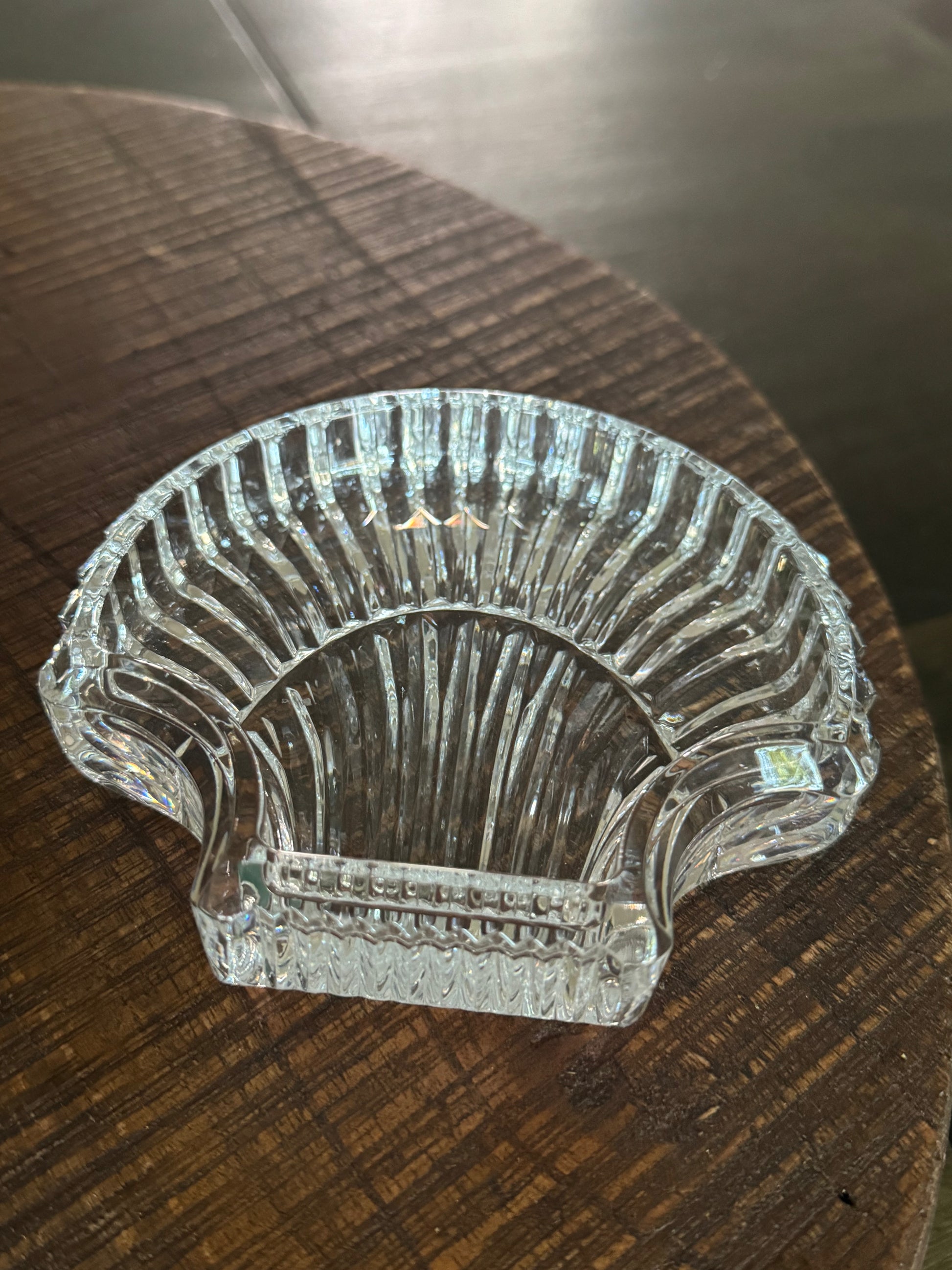 Featuring elegant curves and lines that mimic the natural form of a seashell, the cut patterns of this Waterford crystal shell dish enhance the reflective qualities of the crystal, creating a stunning display of light and sparkle.